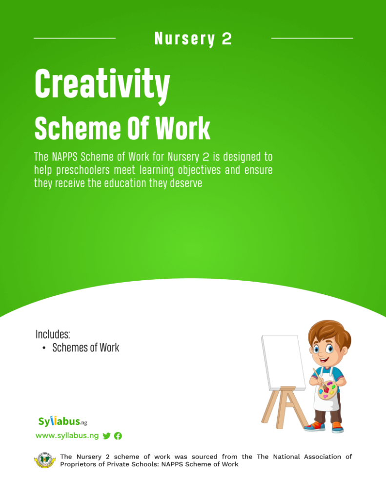 Download the Nursery 2 Creativity Scheme of Work was created by the National Association of Proprietors of Private Schools(NAPPS) as a guide for educators and parents to teach kids.