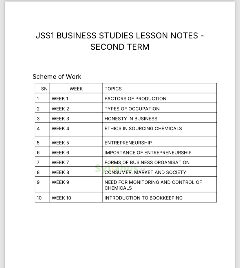 The JSS1 Business Studies lesson notes are a game-changer for teachers. They make teaching feel like a walk in a park. The notes are well-organized, with clear explanations, examples, and exercises to help your students grasp concepts with ease. You will love how they save you hours of preparation time while still covering every topic in the syllabus. Plus, the notes are designed to make your lessons engaging and interactive, keeping your students interested in learning about the world of business. Whether you are a seasoned teacher or new to the subject, these notes will help you deliver lessons with confidence. WHY GET OUR LESSON NOTES? Teaching can be challenging, especially when you're trying to create lesson notes that engage students while covering the syllabus. That is where our ebook series comes in! These ebooks are designed to make lesson planning easier for teachers. Covering all subjects from JSS1 to SS3, each ebook is packed with well-structured lesson notes, key learning objectives, examples, and activities that align with the current curriculum. With these resources, you can save time on lesson preparation and focus on delivering your lessons. Whether you are new to teaching or an experienced educator, our ebooks are your go-to guide for creating a unique and interactive classroom experience. Plus, they are downloadable and easy to use on any device. Improve your teaching today with resources that make a real difference.