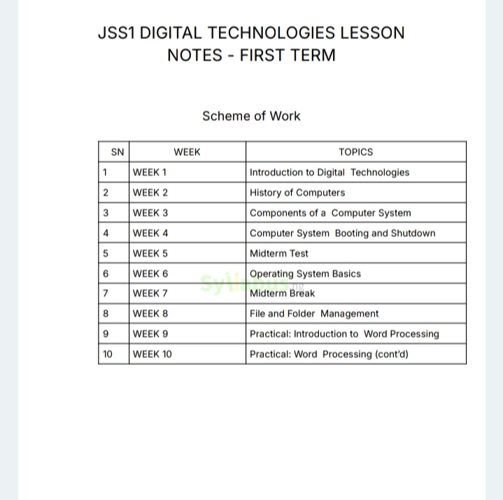 Transform your teaching preparation with our comprehensive JSS1 Digital Technologies Lesson Notes, meticulously designed for Nigerian educators. This complete resource covers all three terms, fully aligned with the Federal State Unified Scheme of Work and curriculum standards.