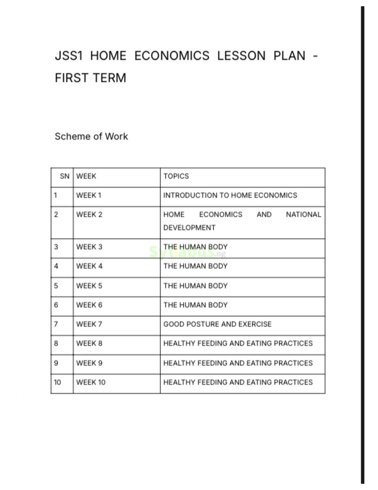 JSS1 HOME ECONOMICS LESSON PLAN DESCRIPTIONS Our comprehensive JSS1 lesson plan covers everything from basic sewing processes to adolescent development and entertainment planning. These detailed plans provide clear objectives, content, and assessments that align perfectly with the curriculum. These professionally designed lesson plans include 10 weeks of content with complete lesson structures for each topic. You'll find learning objectives, key vocabulary, required resources, and detailed content sections that break down complex topics into digestible segments. The plan encompasses a range of teaching strategies, including demonstrations, group activities, and practical exercises, designed to keep students engaged. WHY GET OUR LESSON PLAN? Each lesson includes assessment questions, creative assignments, and teacher reflection sections to help you evaluate student progress and improve your teaching approach. Whether you're teaching sewing skills, household crafts, adolescent development, or home entertainment, these lesson plans provide everything you need to deliver effective, engaging classes.