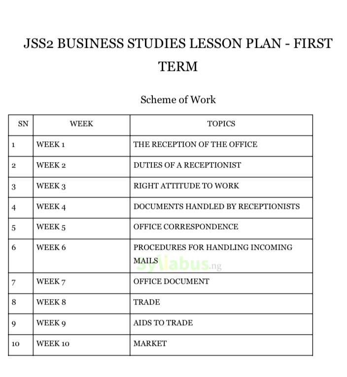 Yes, our lesson plan strictly follows the Nigerian curriculum (Lagos State Unified Scheme of Work) for JSS2 Business Studies, ensuring compliance with national educational standards.