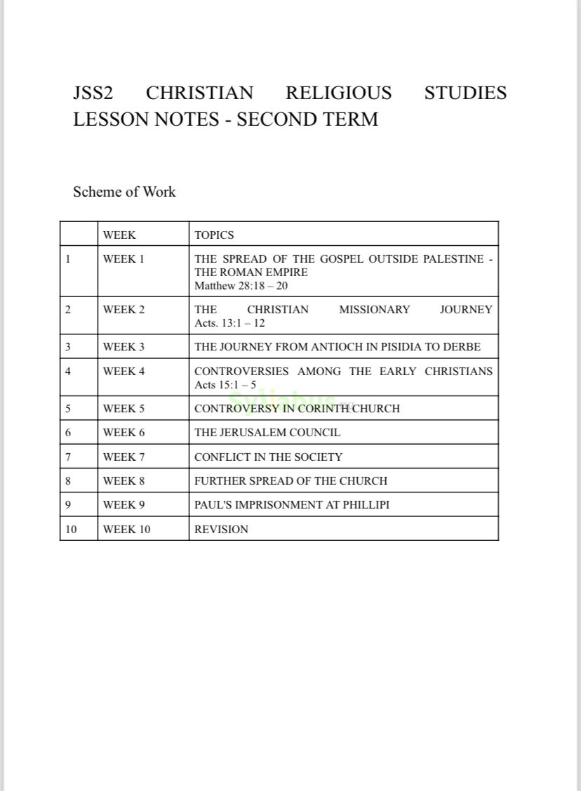 If you are teaching CRS in JSS2, this lesson note will make your work so much easier. It covers all the topics in the scheme per term. The lesson note is organized in a way that is simple to follow, with clear objectives, teaching steps, and evaluation questions. The notes follow the curriculum, so rest assured that you are on track, and they include activities that get students involved. If you want to save time preparing lessons and focus more on engaging your students, you should get these lesson notes. WHY GET OUR LESSON NOTES? Teaching JSS2 CRS can be a lot, but with this lesson note, it’s like having a cheat sheet for every topic. It’s got everything—grammar, comprehension, writing, literature—you name it. What’s great is that it’s broken down into simple steps, so you’re not just dumping information on the kids; you’re guiding them. The exercises and examples are super practical, and there are evaluation questions to help you track their progress. It’s all based on the curriculum, so you’re not missing anything. Honestly, if you want to make your English lessons more engaging and save yourself a ton of prep time, this is exactly what you need.
