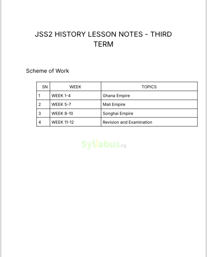 What subjects are covered? We have lesson notes for all JSS2 subjects and they cover all the topics in the JSS2 curriculum.
