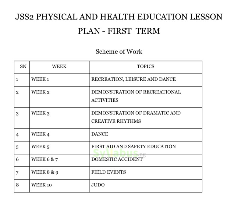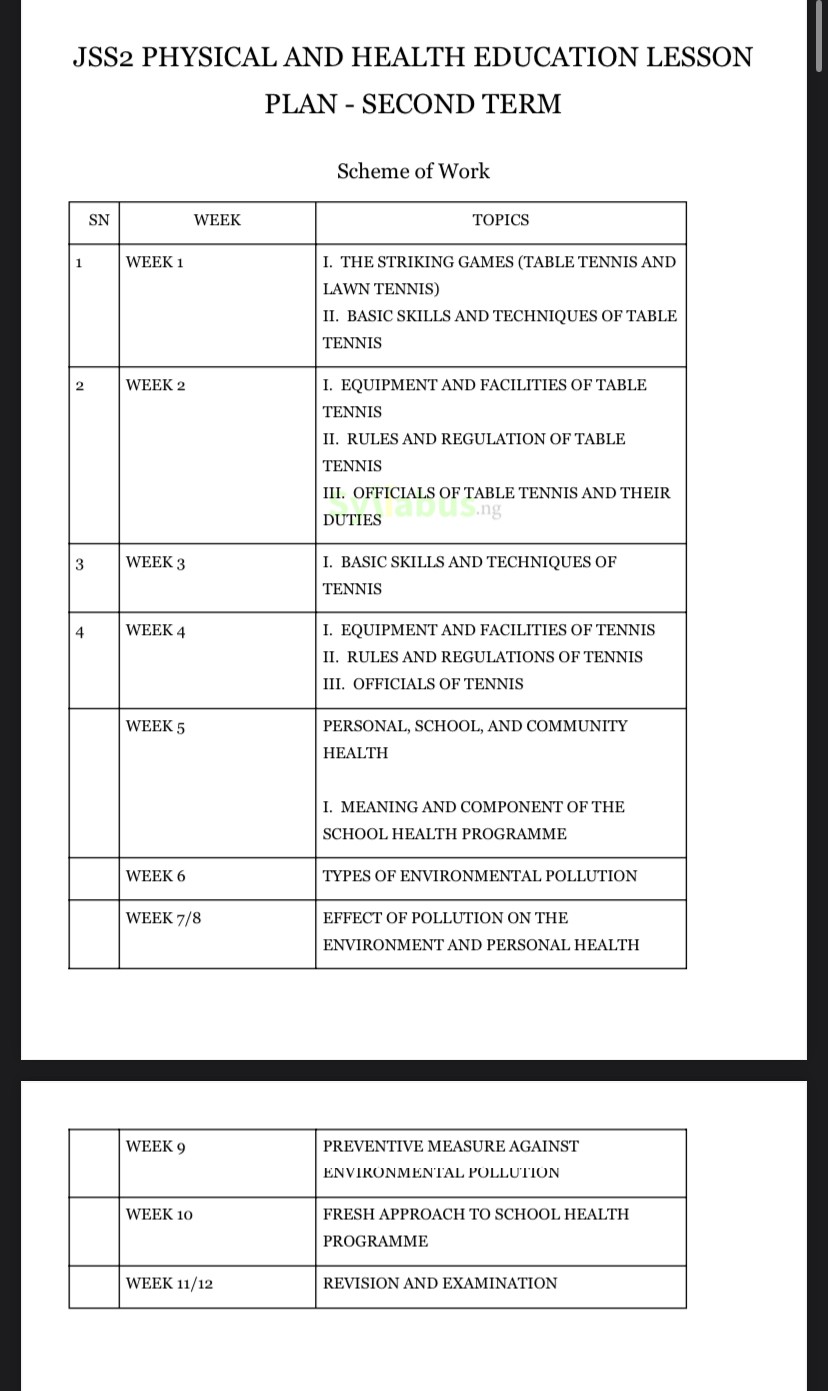Our JSS2 Physical and Health Education lesson plans provide everything you need to deliver comprehensive health and fitness education. From fundamental sports skills to essential health concepts, these meticulously organised plans follow the standard Nigerian curriculum while making PHE engaging and practical for junior secondary students. Each week's lesson comes with clear learning objectives, key terminology lists, detailed content breakdowns, and diverse teaching strategies. The plans incorporate interactive activities like sports drills, health demonstrations, sports drills, health demonstrations, fitness challenges, and group discussions that promote both physical development and health awareness. We've included built-in assessment strategies, skill evaluation rubrics, and comprehensive practical assignments to measure student progress. Save time on preparation and focus on what matters most - developing healthy, active students! WHY GET OUR LESSON PLAN? Teaching Physical and Health Education can be challenging, especially when balancing theoretical health concepts with practical sports instruction. Our lesson plans make this process seamless by providing well-structured content that simplifies topics from first aid to sports techniques. These plans follow the JSS2 scheme of work precisely, ensuring you cover all required topics from communicable diseases to athletic training. Each lesson builds upon previous knowledge, creating a smooth learning progression throughout the term. The lesson plans include varied teaching approaches to accommodate different learning styles and school facilities, keeping students engaged while developing their physical and health literacy. These lesson plans serve as your comprehensive guide for delivering effective PHE instruction.