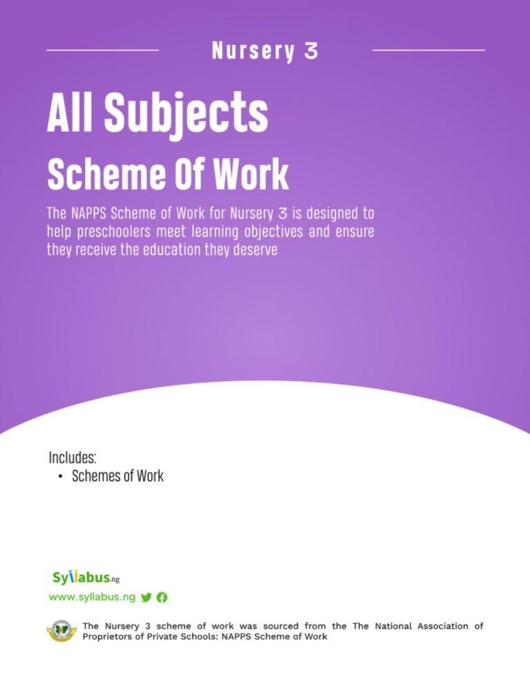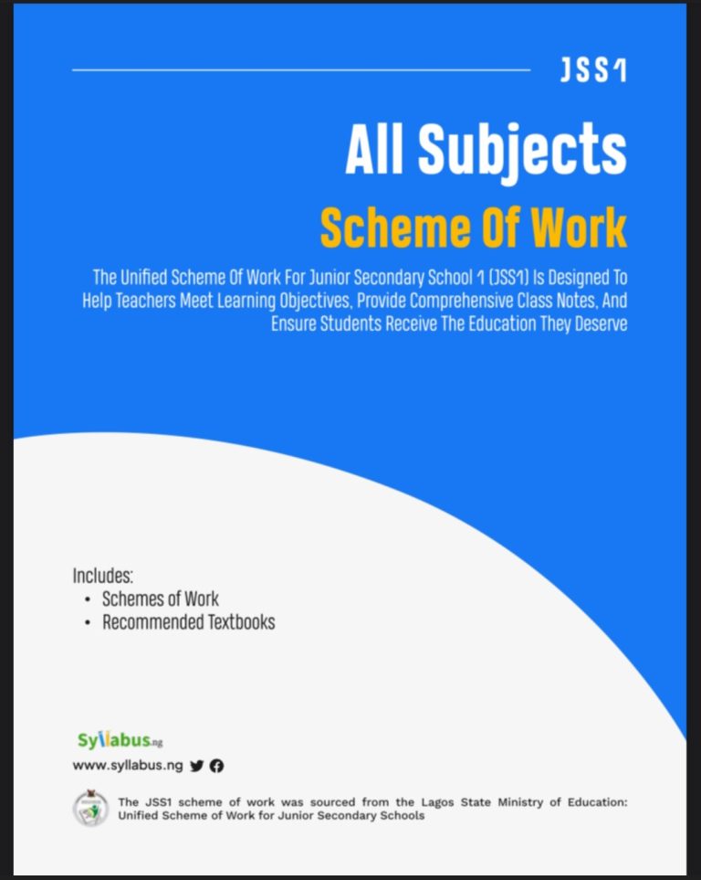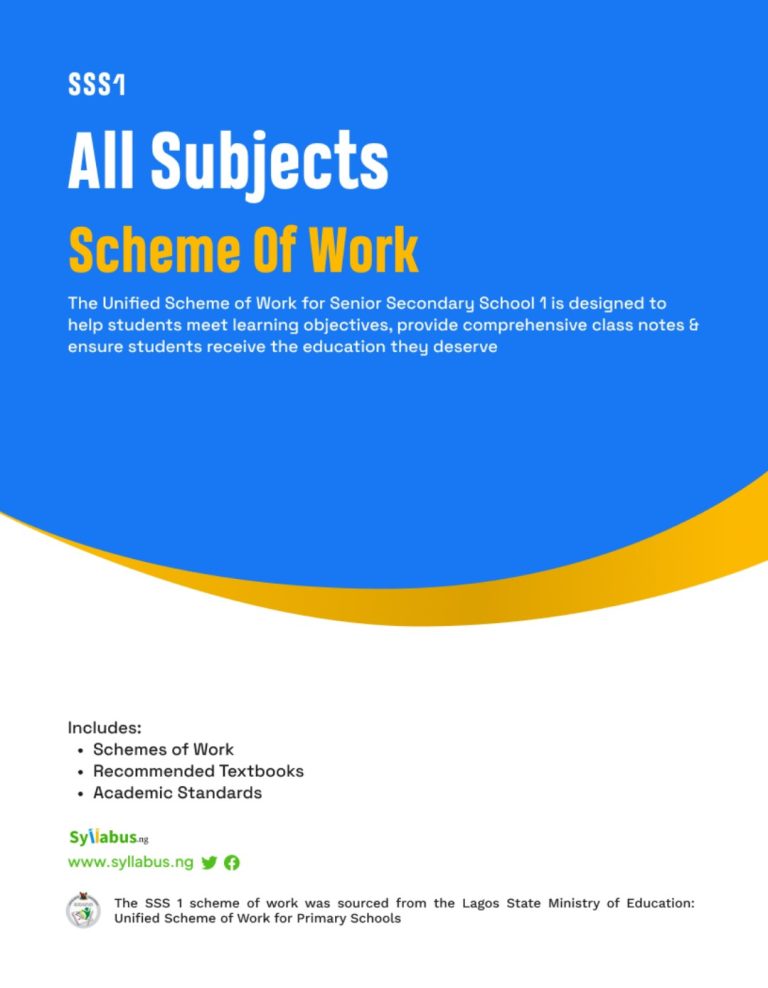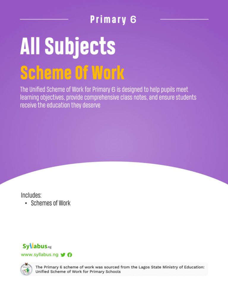 NUMBER OF PAGES: 205 SOURCE: Lagos State Unified Scheme of Work NUMBERS OF SUBJECTS: There are 12 subjects covered by the unified scheme with French being optional. The subjects include:Â