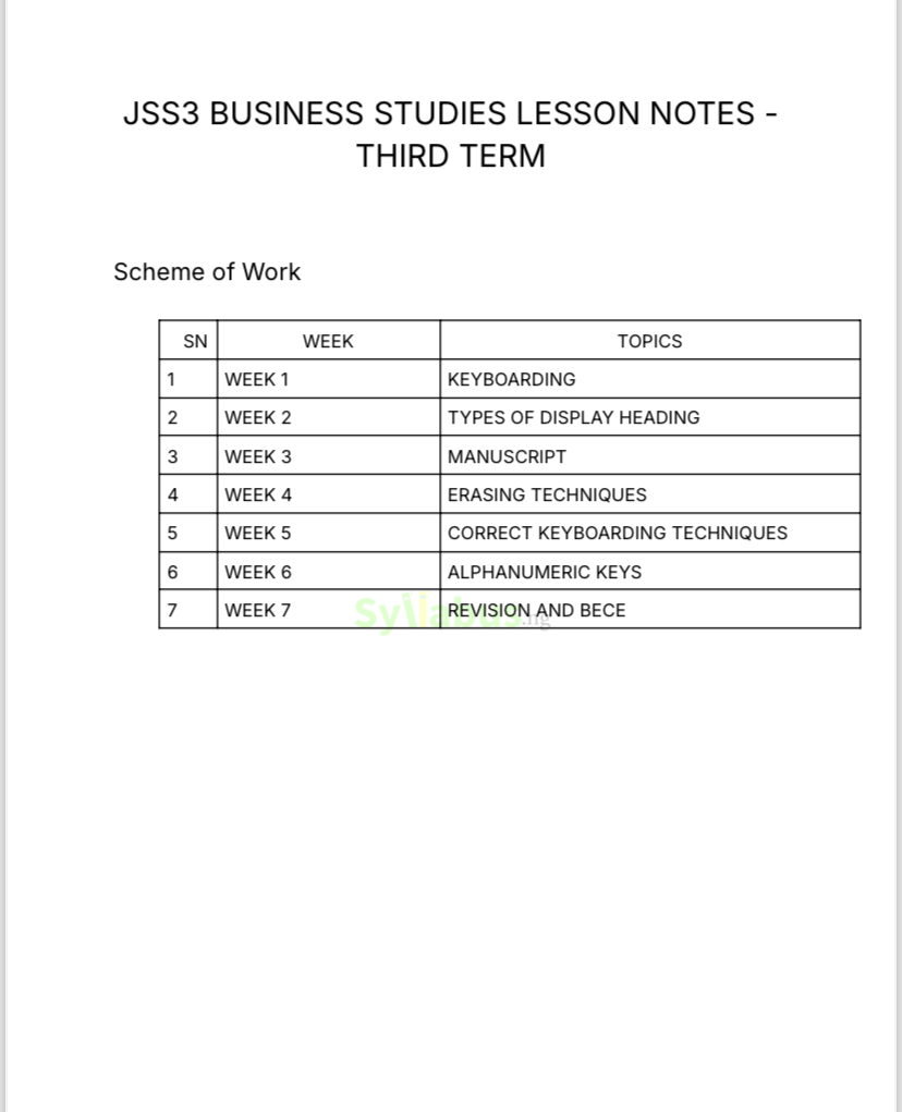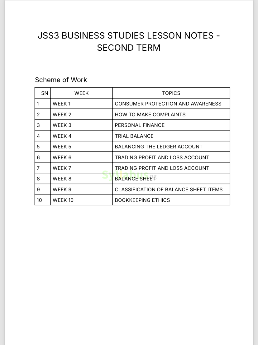 JSS3 BUSINESS STUDIES EXAM QUESTIONS AND ANSWERS DESCRIPTION Prepare your students for success with our comprehensive JSS3 Business Studies Exam Questions package! This meticulously developed resource provides students and teachers with authentic practice materials that perfectly replicate the format and content of actual second term examinations. Our JSS3 Business Studies Exam Questions cover essential business topics including consumer protection, complaint management, personal finance, accounting fundamentals (trial balance, ledger accounts), and financial statements. Each question has been strategically crafted to test both factual knowledge and practical understanding of key business concepts that students must master for their examinations. This robust package includes 60 carefully structured objective questions with multiple-choice options, complemented by 6 detailed theory questions that challenge students to demonstrate comprehensive understanding of important business principles. Complete answers are provided for all questions, making this an invaluable self-assessment and revision tool. Whether you're a teacher looking to provide quality assessment materials or a parent supporting your child's business education, this exam question package serves as the perfect resource to identify knowledge gaps and build confidence before the actual examinations. WHY GET OUR JSS3 BUSINESS STUDIES EXAM QUESTIONS? Business Studies examinations require students to demonstrate both theoretical knowledge and practical application skills. Our exam questions package addresses this dual need by providing:
