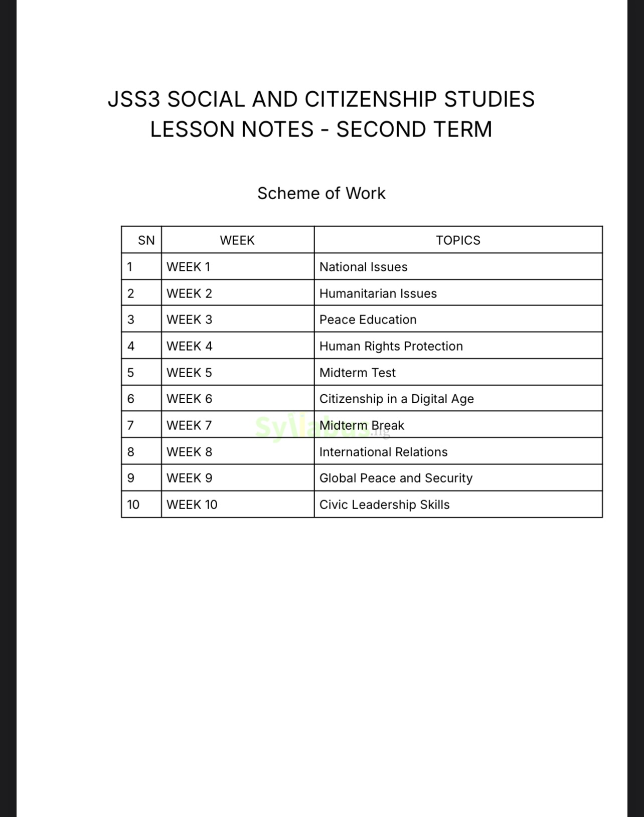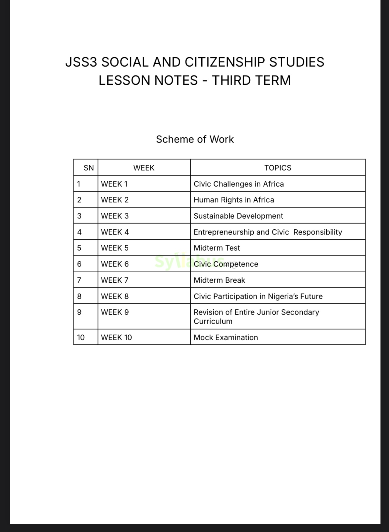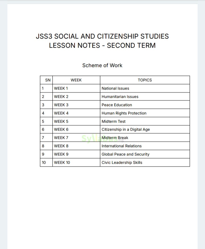 Save valuable preparation time with this comprehensive lesson note designed specifically for Nigerian educators. Aligned with the Federal and State unified scheme of work, this resource covers all three terms of JSS3 Social and Citizenship Studies curriculum. What's Included: