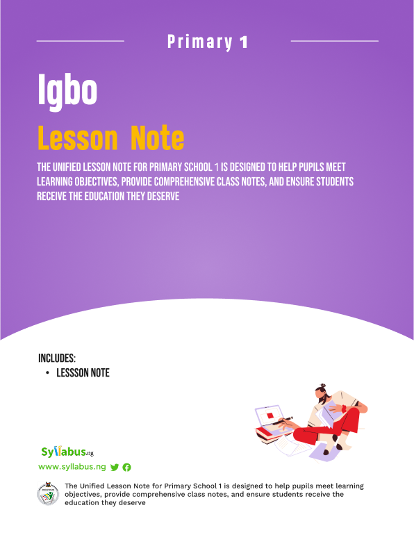 This comprehensive Primary 1 Igbo Lesson Note is an essential resource for educators dedicated to teaching the Igbo language and rich cultural traditions effectively. Save countless hours of preparation while delivering engaging, culturally relevant lessons fully aligned with Nigeria's State Unified and NAPPS Scheme of Work.