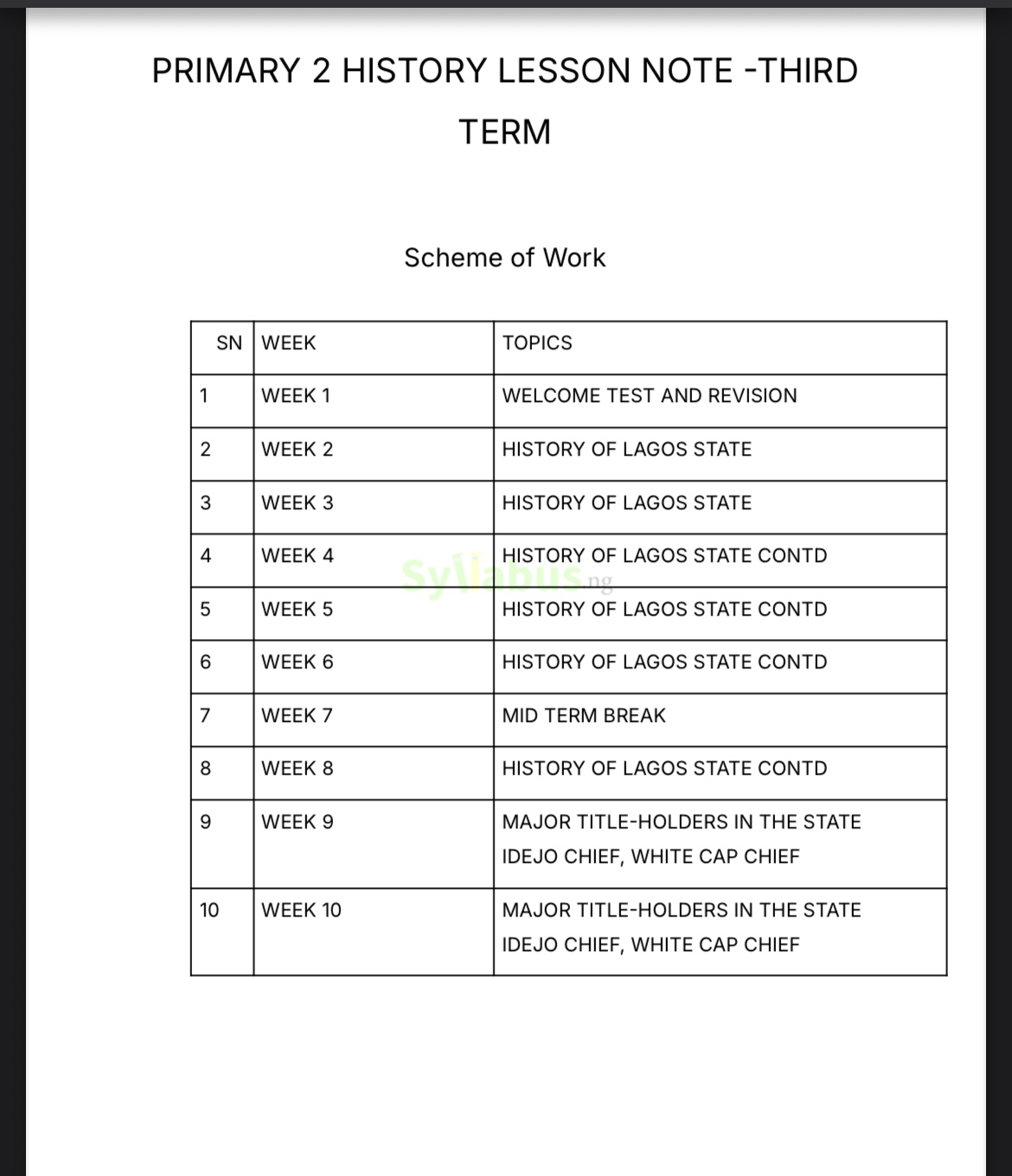Stop spending countless hours creating lesson notes from scratch. With our Primary 2 History Lesson Note, you'll have a complete, standards-aligned teaching resource at your fingertips—ready to use immediately. Invest in efficiency without compromising educational quality.
