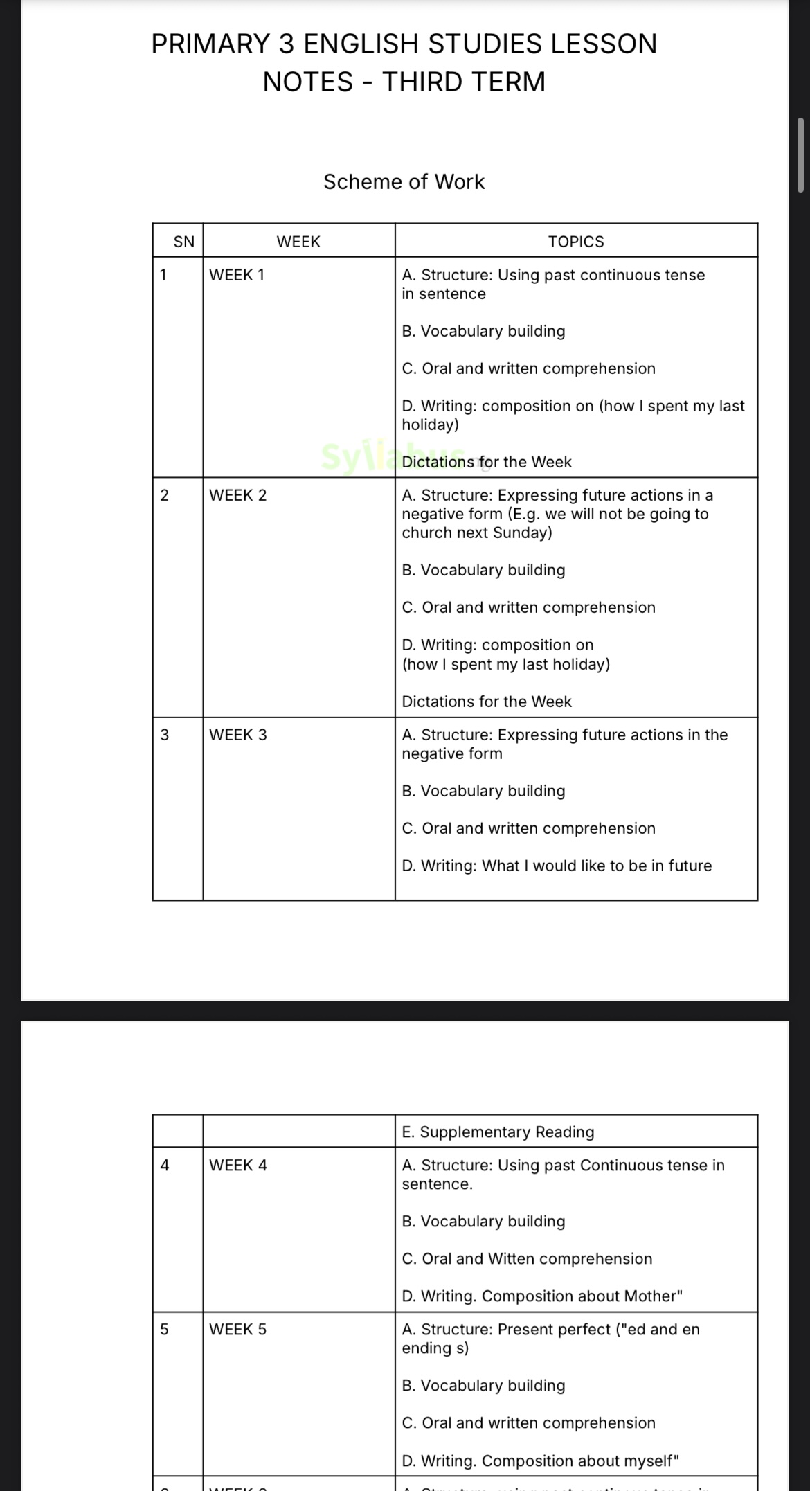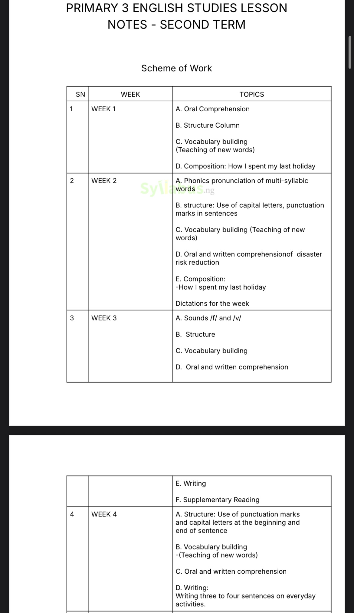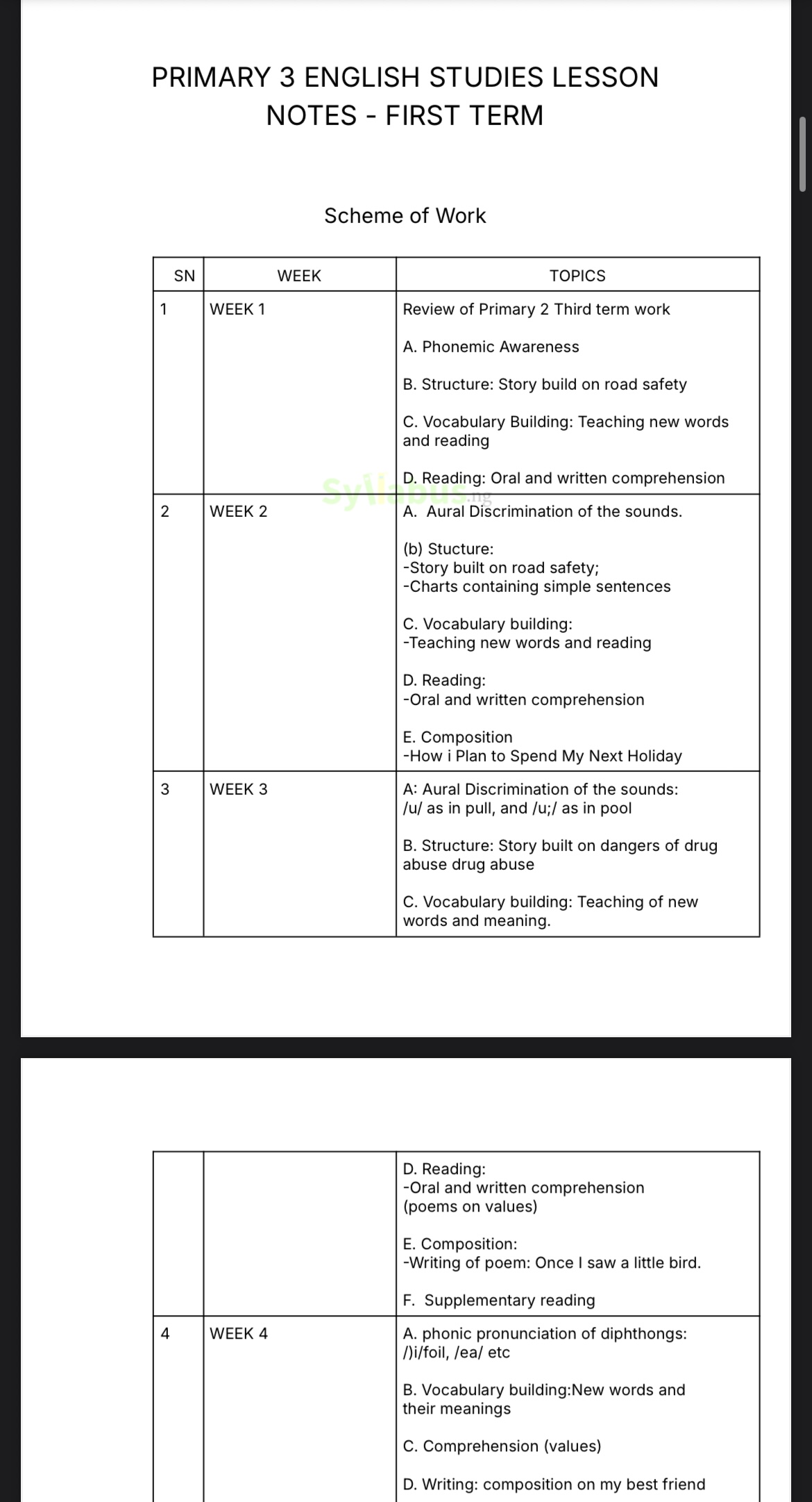 Designed specifically for Nigerian educators, this complete Primary 3 English Language lesson notes package is fully aligned with the State Unified and NAPPS scheme of work. Every lesson is meticulously crafted to help you deliver engaging, effective English instruction while saving countless hours of preparation time.