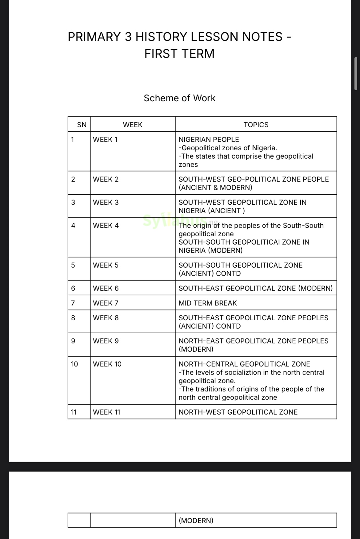 • Weeks 4-5: Ancient Settlements in Lagos State (Features, Origins, Importance, Socialization)