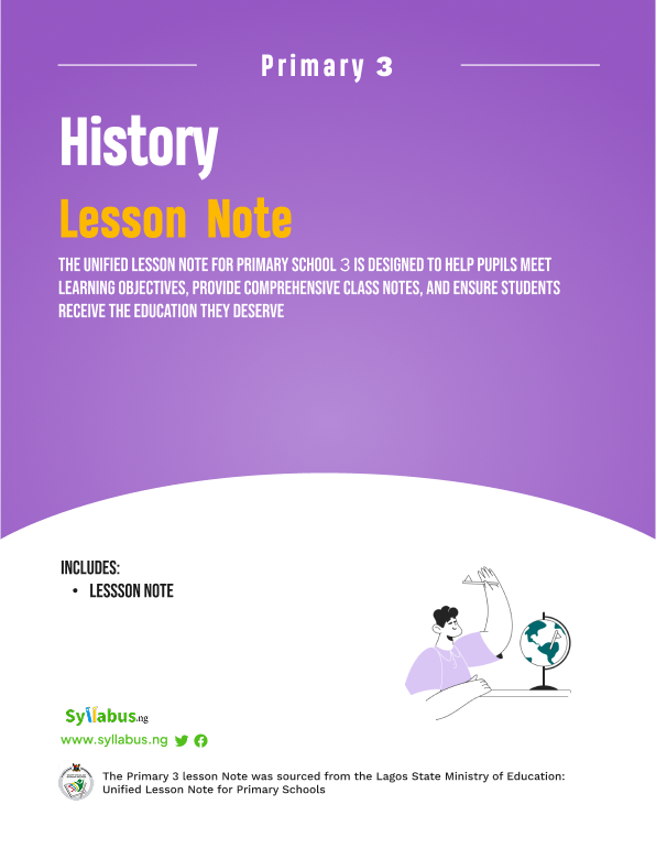 This complete lesson note package covers all three terms of Primary 3 History, providing comprehensive coverage for the entire academic session.