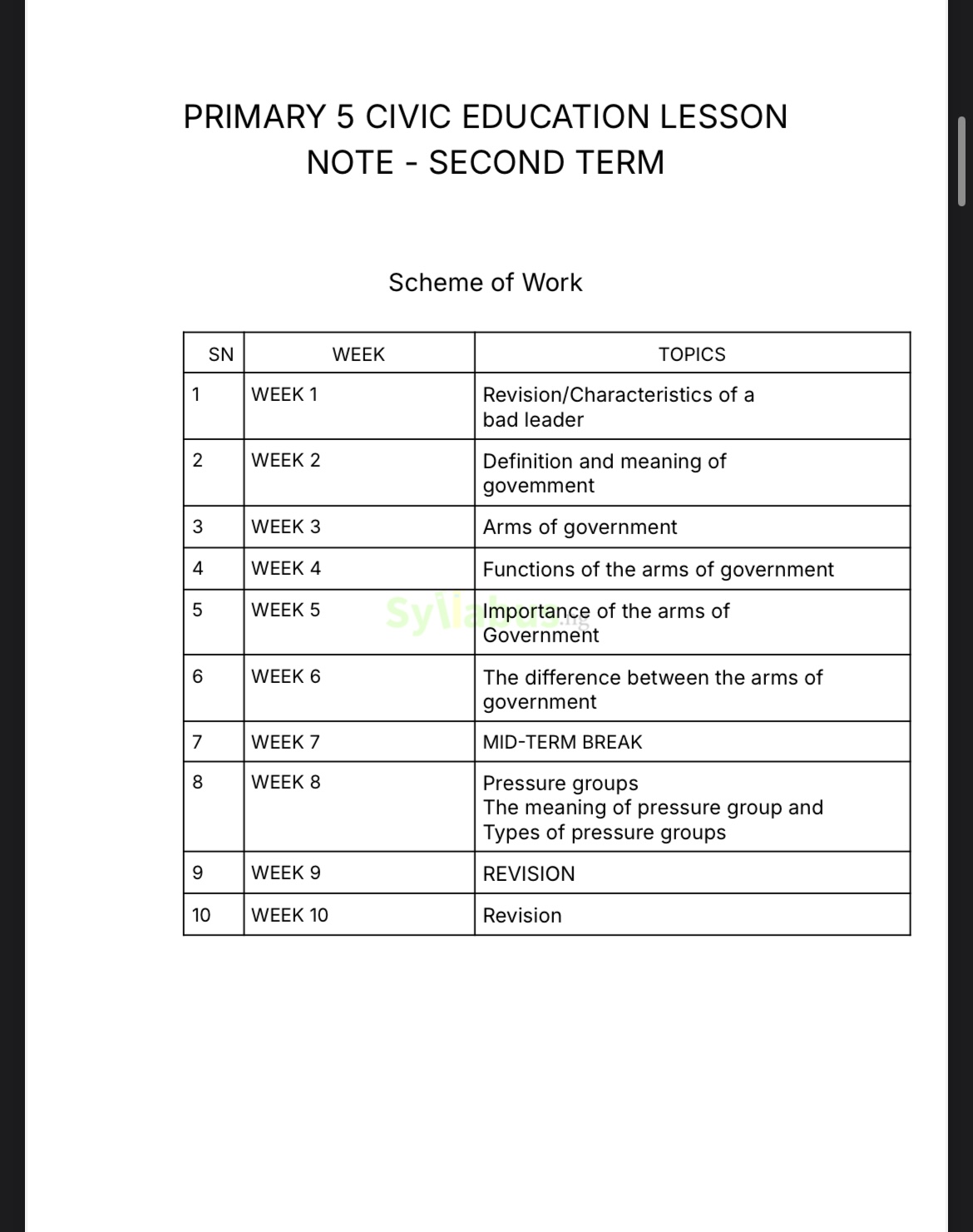 This comprehensive Primary 5 Civic Education Lesson Note is essential for educators nurturing informed, responsible citizens and future leaders. Save valuable preparation time while delivering impactful civic instruction fully aligned with Nigeria's State Unified and NAPPS Scheme of Work.