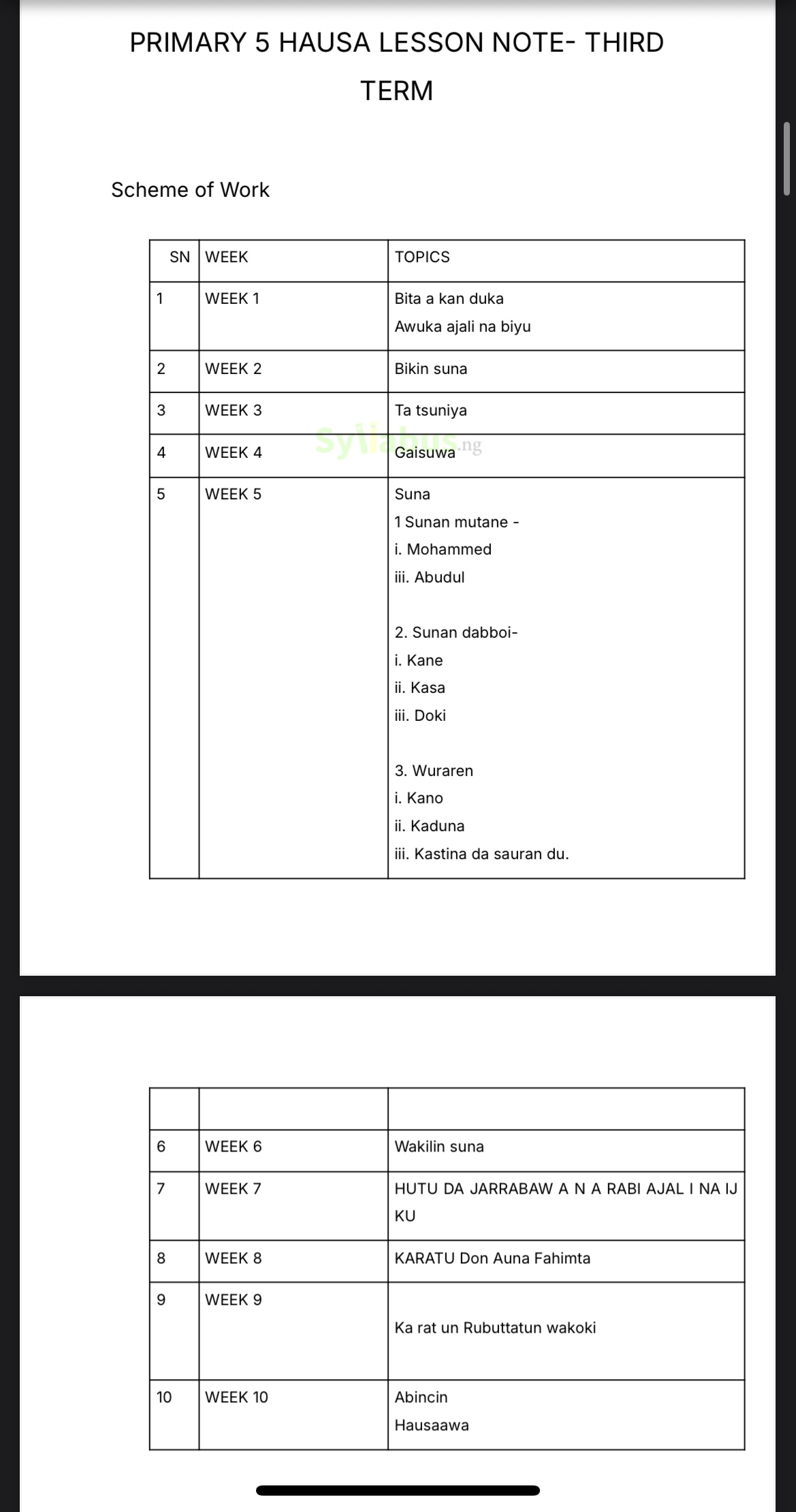 This comprehensive Primary 5 Hausa Lesson Note is designed for educators committed to advanced Hausa language proficiency and cultural preservation. Save valuable preparation time while delivering engaging, culturally authentic lessons fully aligned with Nigeria's State Unified and NAPPS Scheme of Work.