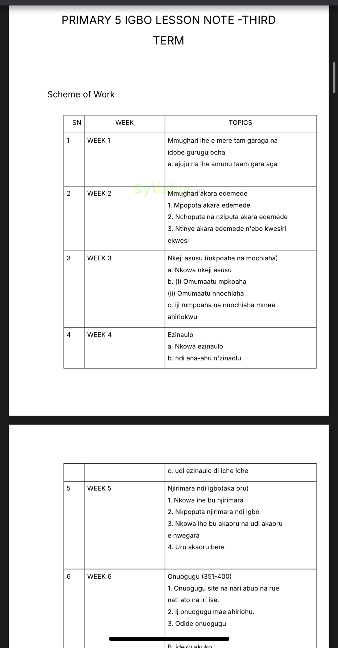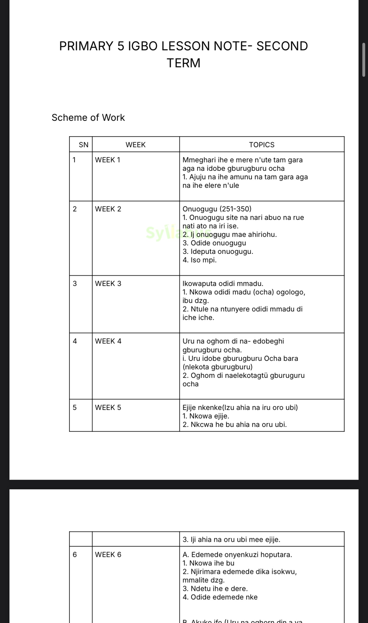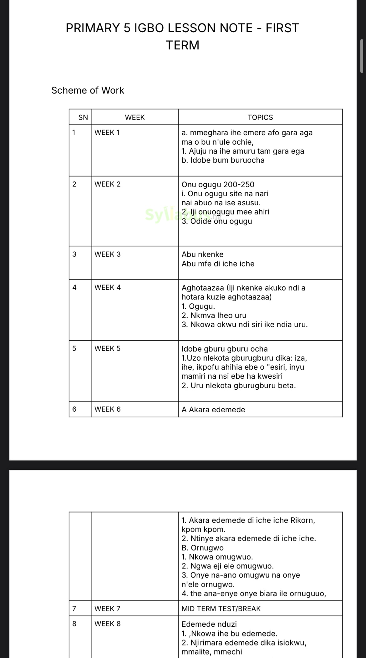 This comprehensive Primary 5 Igbo Lesson Note is essential for educators teaching advanced Igbo language skills and rich cultural traditions. Save countless hours of preparation while delivering engaging, culturally immersive lessons fully aligned with Nigeria's State Unified and NAPPS Scheme of Work.