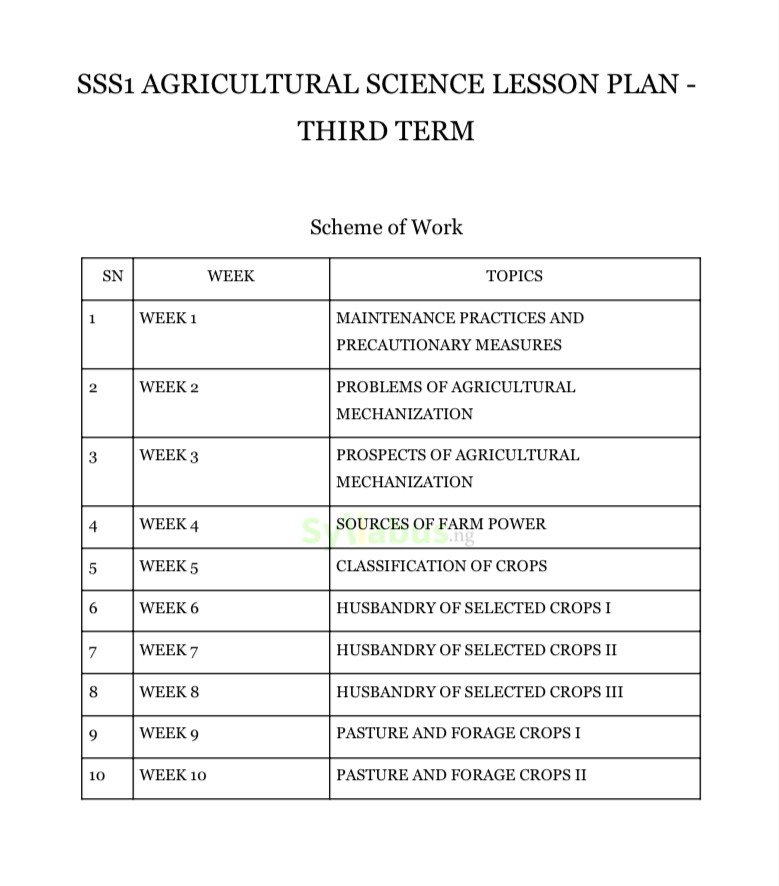 Our comprehensive lesson plan covers the entire academic session curriculum, from Basic Agricultural Concepts to Crop and Animal Production, saving you hours of preparation time while ensuring practical and effective agricultural science instruction. Our lesson plan features detailed weekly breakdowns for all ten weeks of the term, with each lesson meticulously structured to include clear learning objectives, key agricultural terminology, necessary farm tools/resources, and connections to real-world applications. The content sections provide thorough explanations of agricultural concepts with practical illustrations, while hands-on activities and assessments help reinforce student learning.  WHY GET OUR LESSON PLAN? Our Agricultural Science lesson plan is designed to make your teaching journey more effective and less stressful. Each lesson is packed with well-structured notes, clear learning objectives, agricultural vocabulary lists, detailed content explanations with practical examples, and farm-based activities that align perfectly with the current curriculum. With this lesson plan, you can save valuable time on preparation and focus on delivering quality instruction.