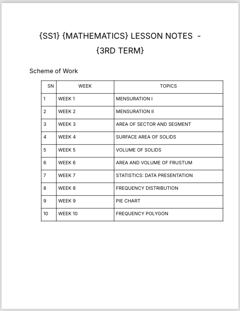 Preparing your students for mathematics exams just became effortless with our comprehensive SS1 Mathematics Exam Questions! Meticulously designed for mathematics teachers, these exam questions eliminate the stress of creating challenging yet appropriate assessment materials from scratch. Covering number bases, algebra, indices, logarithms, modular arithmetic, quadratic equations, and more, this collection provides the perfect balance of difficulty to evaluate your students' mathematical comprehension. Each question set follows standard examination formats with objective questions and detailed theory questions that promote critical thinking and problem-solving abilities. The questions are accompanied by complete solutions and marking schemes to streamline your grading process. Whether you're an experienced mathematics educator or new to teaching SS1 Mathematics, this package serves as your complete assessment toolkit, helping you effectively evaluate student progress while saving precious preparation time. It's like having a mathematics examination specialist handling your assessment creation! Secure your copy today! WHY GET OUR EXAM QUESTIONS? Assessment creation can be time-consuming, especially when trying to develop questions that properly test mathematical understanding while aligning with curriculum standards. Our SS1 Mathematics Exam Questions package eliminates this challenge! Covering all three terms of the academic year, these exam questions are strategically structured to test computational skills, algebraic manipulation, mathematical reasoning, and problem-solving abilities. Each set includes multiple-choice questions with various difficulty levels and comprehensive theory questions that require step-by-step solutions. With these resources, you'll save countless hours on exam preparation and focus instead on teaching and student development. The included answer keys and worked solutions make evaluation straightforward and consistent. Whether you're preparing students for internal assessments or building toward external examinations like WAEC or NECO, our exam questions provide the perfect practice platform. These materials are downloadable in PDF format for easy printing or digital distribution to students. Elevate your mathematics assessment strategy today with questions crafted by experienced mathematics educators!