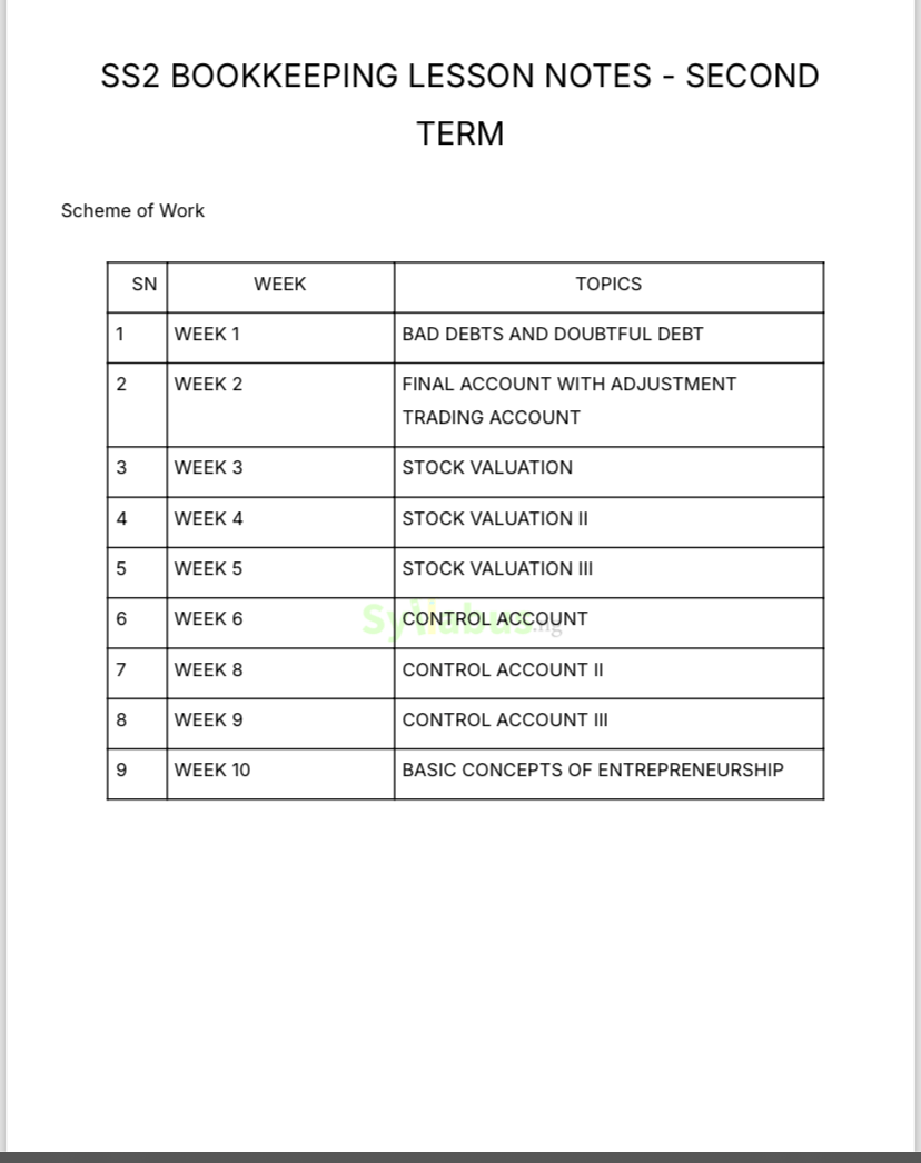 Is this package suitable for all SS2 Bookkeeping syllabi? Yes, the content aligns with the latest national curriculum for SS2 Bookkeeping, ensuring you stay on track with academic standards.