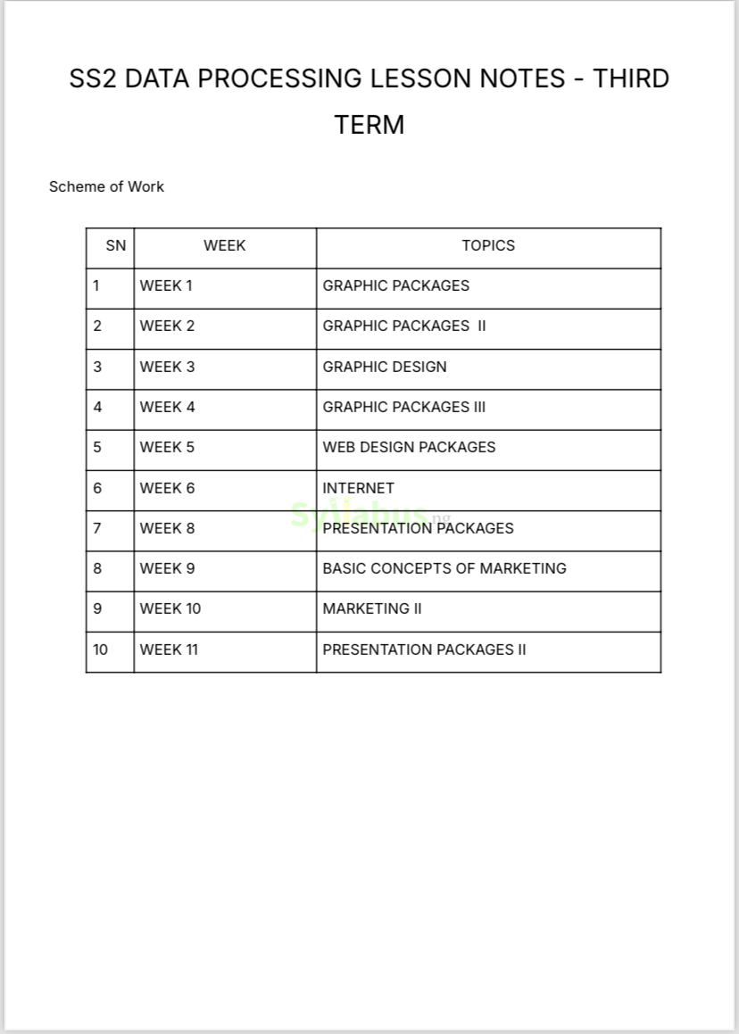 Is this package suitable for all SS2 Data Processing syllabi? Yes, the content aligns with the latest national curriculum for SS2 Data Processing, ensuring you stay on track with academic standards.