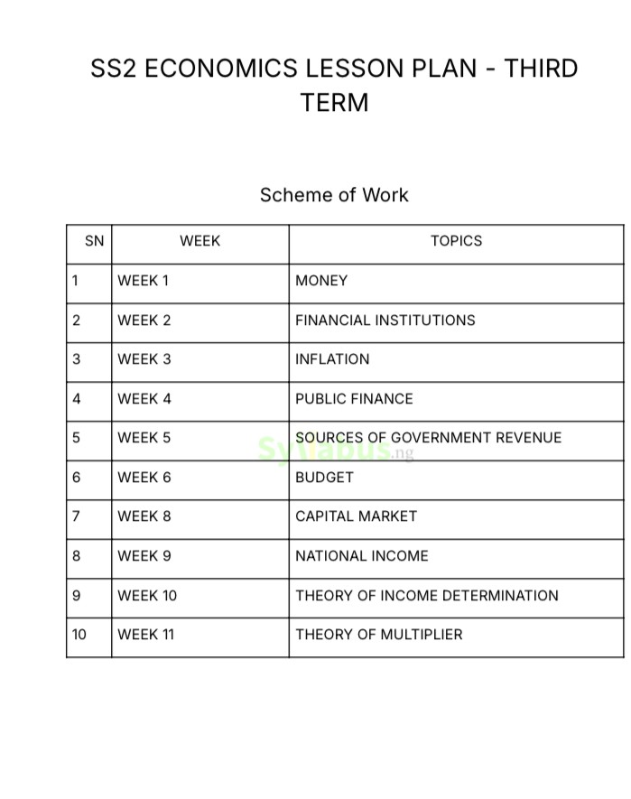 SS2 ECONOMICS LESSON PLAN DESCRIPTIONS Looking for a time-saver that actually works? Our SSS2 Economics Lesson Plans are a lifesaver for busy teachers! They cover everything from microeconomics to macroeconomics, with ready-to-use case studies and activities that'll keep your students engaged all term long. Gone are the late nights planning tomorrow's lesson. Each week is thoughtfully structured with clear objectives, real-world examples, and assessment ideas that actually work in real classrooms. We've packed in everything from teaching price elasticity to guiding students through national income accounting, all organized in an easy-to-follow format that flows naturally from one lesson to the next. It is perfect for both new teachers finding their feet and veterans looking to refresh their approach. These plans breathe new life into standard curriculum topics and give you back hours of your precious time. Grab yours today, your future self will thank you! WHY GET OUR LESSON PLANS? Let's be honest, teaching Economics well takes serious prep time. Between grading assignments, preparing case studies, and trying to have a life outside school, who has hours to craft detailed lesson plans? That's exactly why we created these comprehensive SSS2 Economics Lesson Plans. They're designed by teachers who understand the real challenges you face every day. Every week includes straightforward objectives, content explanations in plain English, practical teaching strategies, and ready-to-use assessment questions. Best of all? They're fully aligned with the curriculum, so you know you're covering everything your students need to succeed.
