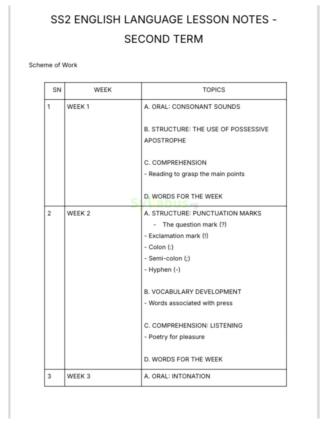 SS2 ENGLISH LANGUAGE EXAM QUESTIONS DESCRIPTIONS Prepare your students for excellence with our comprehensive SS2 English Language Exam Questions! Designed specifically for educators, these carefully crafted questions eliminate the stress of exam preparation by providing a wide range of assessment materials that align perfectly with the current curriculum. From vocabulary and grammar to phonetics, comprehension, and essay writing, our exam questions cover all critical areas of language learning. Each section features meticulously structured questions with clear marking schemes to simplify your evaluation process. The questions progress in difficulty, allowing you to accurately assess your students' understanding and pinpoint areas needing improvement. Whether you're a seasoned English teacher or new to SS2, these exam questions serve as the perfect tool to gauge your students' language proficiency while preparing them for higher academic challenges. Secure your copy today and transform your assessment approach! WHY GET OUR EXAM QUESTIONS? Creating effective assessment materials that thoroughly evaluate students' language proficiency while adhering to curriculum standards can be incredibly time-consuming. That's where our comprehensive exam question package makes all the difference! Covering all three terms of SS2 English Language, these professionally designed questions assess vocabulary, grammar, comprehension, phonetics, and writing skills through a balanced mix of objective and theory questions. Each set is structured to progress from fundamental concepts to more complex applications, providing a complete evaluation of your students' capabilities. With our ready-to-use exam questions, you can save countless hours on question formulation and focus instead on targeted teaching strategies. Each package includes detailed marking schemes and answer keys for objective questions, making grading straightforward and consistent. Whether you're an experienced educator or new to teaching SS2, these exam questions provide the reliable assessment tools you need to accurately gauge student performance and prepare them for success. Available in digital format for immediate use on any device, these resources will revolutionize your assessment approach while maintaining the highest educational standards.