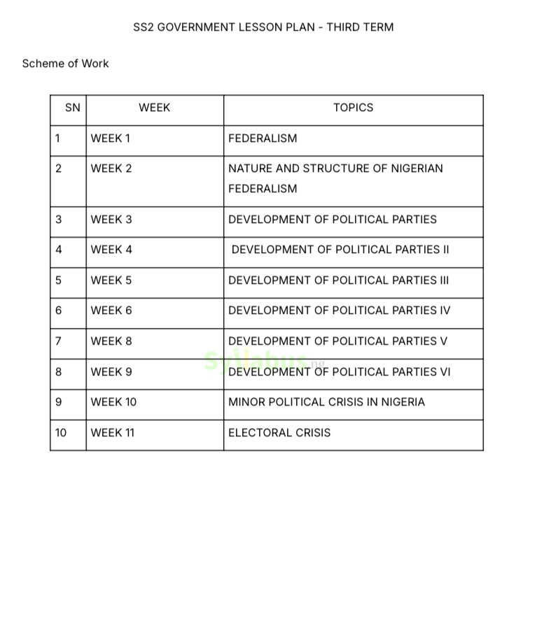 SS2 GOVERNMENT LESSON PLAN DESCRIPTIONS Gone are the late nights planning tomorrow's lesson. Each week is thoughtfully structured with clear objectives, current political examples, and assessment ideas that actually work in real classrooms. We've packed in everything from teaching constitutional development to analyzing electoral systems, all organized in an easy-to-follow format that flows naturally from one lesson to the next. It is perfect for both new teachers finding their feet and veterans looking to refresh their approach. These plans breathe new life into standard curriculum topics and give you back hours of your precious time. Grab yours today, your future self will thank you! WHY GET OUR LESSON PLANS? Let's be honest, teaching Government well takes serious prep time. Between tracking current political events, preparing engaging discussions, and trying to have a life outside school, who has hours to craft detailed lesson plans? That's exactly why we created these comprehensive SSS2 Government Lesson Plans. They're designed by teachers who understand the real challenges you face every day. From teaching separation of powers to guiding students through comparative government analysis, we've thought through each lesson so you don't have to. Every week includes straightforward objectives, content explanations in plain English, practical teaching strategies, and ready-to-use assessment questions. Best of all? They're fully aligned with the curriculum, so you know you're covering everything your students need to succeed.
