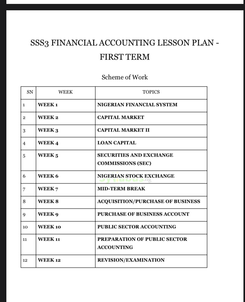 Does this lesson plan cover the complete SS3 Financial Accounting curriculum?