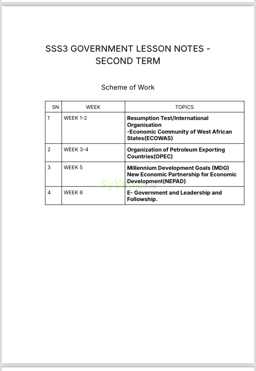 SS3 GOVERNMENT EXAM QUESTIONS DESCRIPTION Preparing your students for Government examinations just became seamless with our comprehensive SS3 Government Exam Questions pack! Expertly designed for teachers, these questions help eliminate the stress of exam preparation by providing well-structured and curriculum-aligned assessment materials. From Nigeria's political history and military regimes to international relations, conflict resolution, and global organizations, this resource thoroughly tests students' understanding of key governmental concepts and historical developments. The questions expertly evaluate students' knowledge of Nigeria's foreign policy, international organizations like the UN and AU, and critical political developments that have shaped the nation. The pack includes both objective and theory questions with detailed answers for the multiple-choice section. Whether you're a new or experienced Government teacher, these exam questions will save you valuable preparation time while ensuring your students are thoroughly evaluated on essential political concepts. It's like having a political science expert who does half the work for you! Grab your copy now! WHY GET OUR EXAM QUESTIONS? Creating comprehensive Government exam questions that effectively assess students' understanding while covering the entire political science curriculum can be time-consuming and challenging. That's where our SS3 Government Exam Questions pack becomes your essential teaching resource! With this resource, you can save countless hours on exam preparation and focus on teaching fundamental political concepts. Whether you're preparing students for internal assessments or final examinations, our exam questions provide the perfect evaluation and revision tool. Plus, they're downloadable and easy to use on any device. Enhance your assessment strategy today with resources that truly make a difference!
