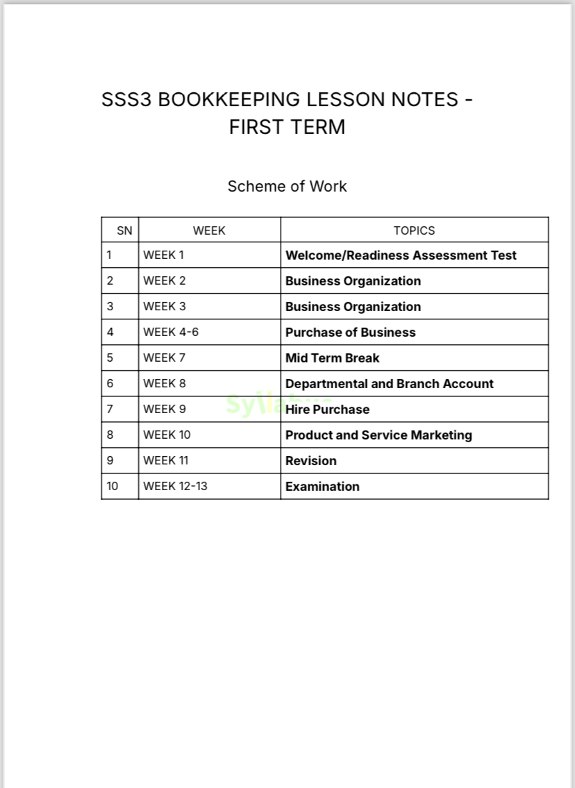 Are the Bookkeeping notes aligned with the WAEC and NECO syllabus? Yes, all our lesson notes are based on the approved WAEC and NECO syllabus for the year.