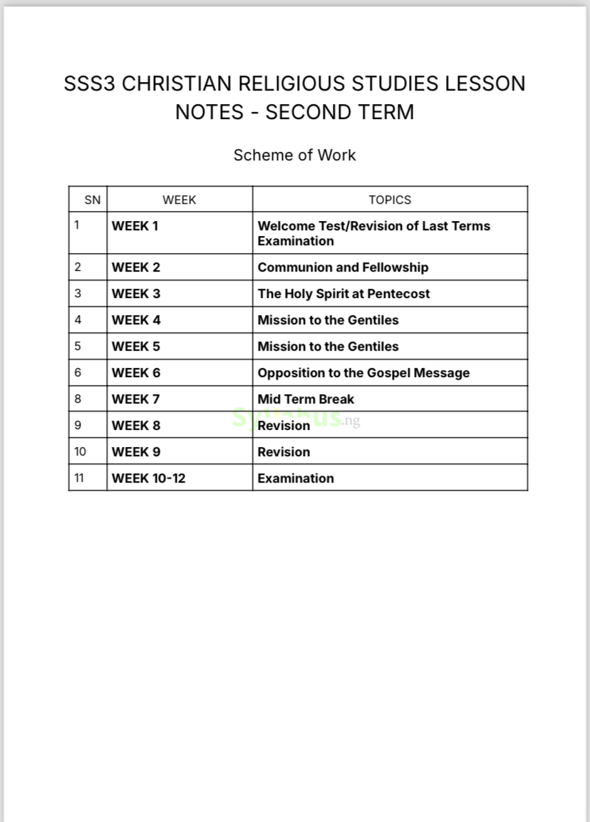 Are the CRS notes based on the WAEC and NECO syllabi? Yes, all our lesson notes are based on the approved WAEC and NECO syllabus for the year.